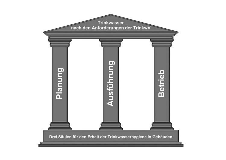 Bild 1: Drei-Säulen-Modell für eine einwandfreie Trinkwasserhygiene in Gebäudeinstallationen.