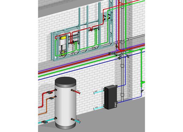 Zu den Lösungsstrategien zählt daher zum einen, Hauswasseranschlüsse und Trinkwasserverteilungen nur in unbeheizten Kellerräumen ohne direkte Sonneneinstrahlung vorzusehen. Auch bei der Trassenplanung der Kellerverteilung ist auf den Aspekt der Sonneneinstrahlung und der Raumwärmelasten zu achten. Zum Standard sollte ebenfalls gehören, PWC-Leitungen mit der gleichen 100-Prozent-Dämmung zu umhüllen wie PWH- und PWH-C-Leitungen. Die Fremderwärmung von PWC im Steigstrang wird am besten mit der getrennten Installation von warm- und kaltgehenden Leitungen in separaten Schächten reduziert. Zu den kaltgehenden Leitungen zählen Lüftungsrohre, Abwasserrohre oder Feuerlöschleitungen zusammen mit PWC. In einem weiteren Schacht für warmgehende Leitungen werden PWH und PWH-C dann zusammen mit der Heizungszirkulation installiert.