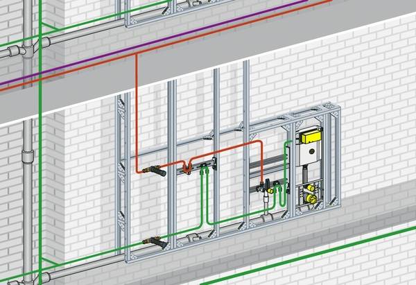 Um PWC-Leitungen nicht den hohen Wärmelasten in abgehängten Decken auszusetzen, ist es sinnvoll, die Stockwerksverteilung für PWC in Bodennähe an die Hauptleitung anzuschließen und von unten an die Entnahmestellen zu führen. Erfolgt die Leitungsführung für PWH hingegen weiterhin in der Decke und von oben zu den Entnahmestellen, ergibt sich daraus zudem eine thermische Entkopplung zu PWC-Leitungen in gedämmten Vorwandinstallationen.
