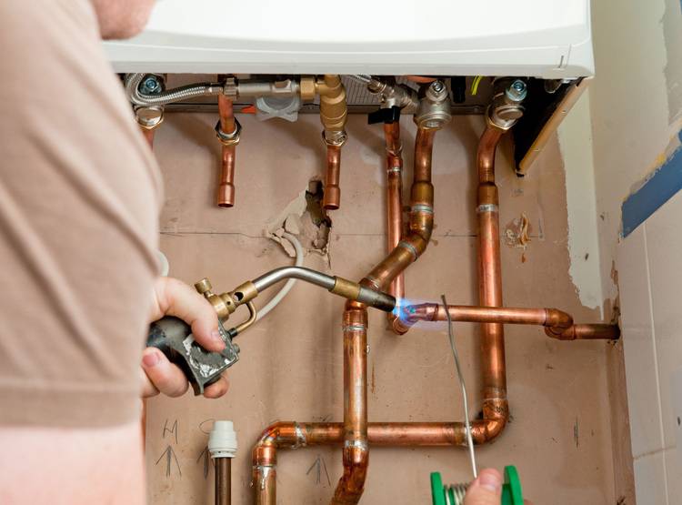 Löten ist ein traditionelles, thermisches Verfahren zum stoffschlüssigen Fügen von Metallen (Bild 9). Die Verbindung wird entweder durch Schmelzen eines Lotes (Schmelzlöten) oder durch die Diffusion an den Grenzflächen der Werkstoffe (Diffusionslöten) hergestellt. Löten zählt zu den nicht lösbaren, stoffschlüssigen und elektrisch leitenden Verbindungen und wird in der Gebäudetechnik bei Kupferrohren angewendet (Weich- oder Hartlöten je nach Dimension).