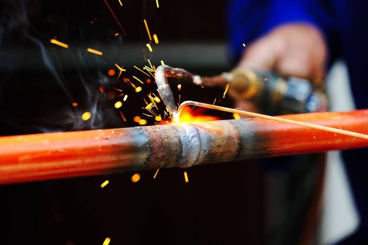 Schweißarbeiten (Bild 10) in großen Heizungsanlagen werden kaum noch vom Heizungsbauer ausgeführt. Der Grund: Diese Verbindungsart gehört nicht mehr zur Ausbildung. Groß dimensionierte, dickwandige Stahlrohre werden mittels E-Schweißen oder durch Gasschmelzschweißen verbunden. Geräte und Armaturen (wie Schlammabscheider) in größerer Dimension gibt es ebenfalls mit Schweißanschluss.