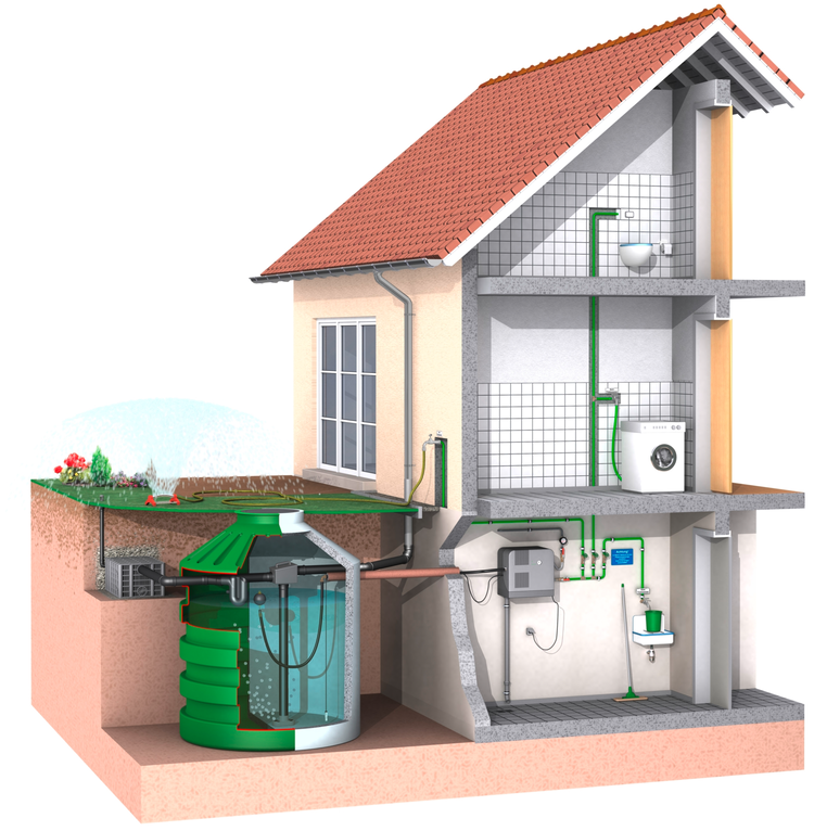 Im Einfamilienhaus können durch die Nutzung von Regenwasser bis zu 30–50 % des Trinkwasserbedarfs eingespart werden, vor allem bei der Toilettenspülung.