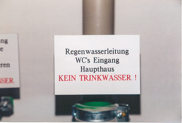 Seit 2001 müssen nach § 17, Absatz 2, der Trinkwasserverordnung zusätzlich zu den Leitungen auch die Entnahmestellen für Regenwasser dauerhaft gekennzeichnet sein. Gemeint sind damit nicht fest installierte Waschmaschinen oder Toilettenspülungen, sondern Zapfventile innen und außen am Gebäude.