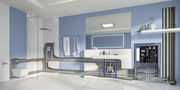 So ist schnell die Drei-Liter-Grenze überschritten. Laut Norm gilt: „Bei Rohrleitungsinhalten von > 3 l sind Zirkulationsleitungen oder selbstregelnde Temperaturhaltebänder einzubauen.“ Ob 3 l ausreichend sind, entscheidet sich dabei schon bei der Planung des Badezimmers – sowohl in Bezug auf die Lage im Gebäude als auch die Positionierung der Sanitärobjekte.