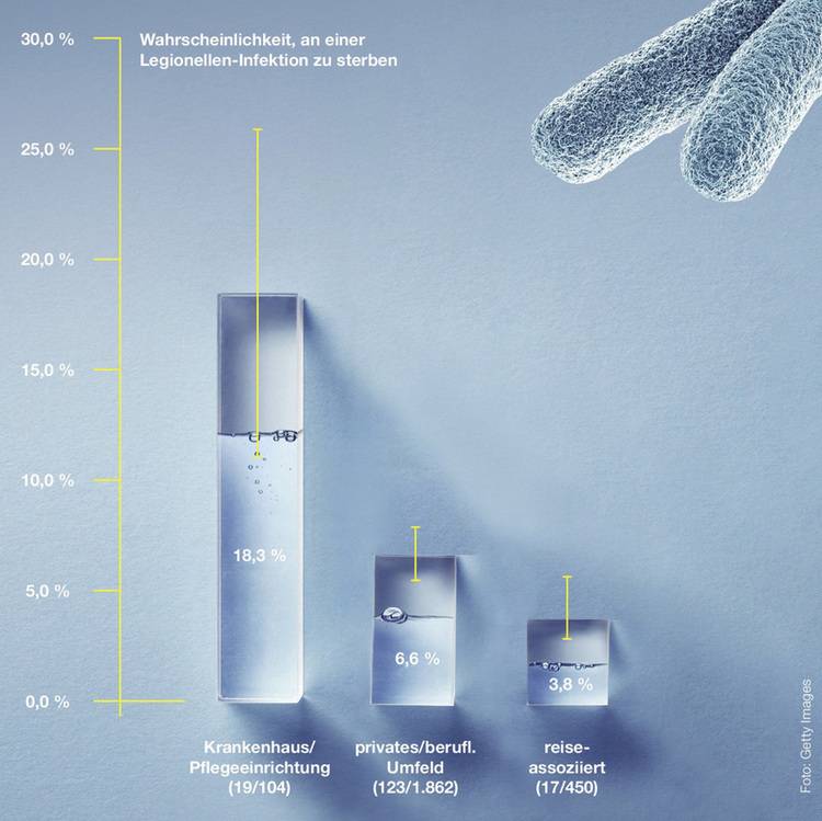 Nach der Capnetz-Studie [1] sind in Deutschland Legionellen jährlich für 15.000 bis 30.000 Erkrankungen an Legionellose verantwortlich. Davon verlaufen schätzungsweise 1500 bis 2000 tödlich. Für das nicht tödliche Pontiac-Fieber schätzt das Robert Koch-Institut (RKI) zehn- bis hundertfach höhere Fallraten. Daher stuft das Umweltbundesamt (UBA) Legionellen als den bedeutendsten Umweltkeim ein, vor dem die Bevölkerung zu schützen ist.