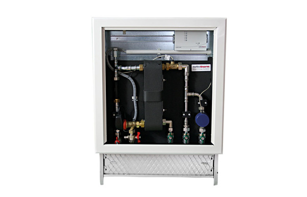 Neben dem zentralen Wärmespeicher im Heizraum ist in jeder Wohneinheit lediglich ein kompakter Unterputzschrank sichtbar. Die Wohnungsstation kann auf Wunsch fertig vormontiert geliefert werden, sodass sich der Installationsaufwand weiter verringert. Im Gegensatz zu vergleichbaren Systemen, die per Differenzdruck gesteuert werden, verfügt die Wohnungsstation EWS über eine moderne Steuer- und Reglungstechnik. Dieser zukunftsorientierte und ganzheitliche Lösungsansatz ermöglicht eine automatisierte und zentrale Auslesung von Verbrauchsdaten und das Heizsystem kann ganz einfach abgeschaltet werden, wenn es nicht benötigt wird, wodurch sich Energie einsparen lässt.