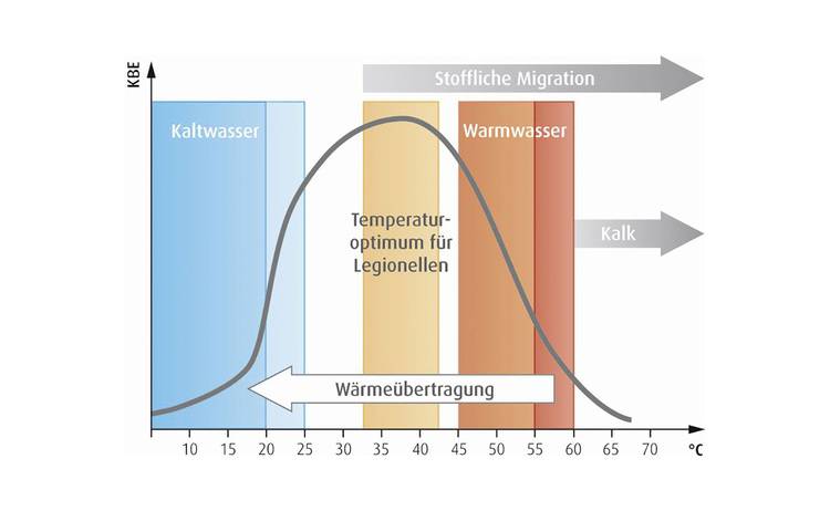 Stagniert das Wasser, fördert das eine unerwünschte Erwärmung des Kaltwassers. In Gebäuden ist das Kaltwasser laut DIN EN 806-2 vor Erwärmung zu schützen und soll nach 30 Sekunden mit maximal 25 °C aus dem Zapfhahn fließen. Laut einer Studie der TU Dresden sollte die Kaltwassertemperatur bei 20 °C liegen. Denn bereits bei Temperaturen unter 25 °C können sich mikrobielle Erreger wie beispielsweise Legionellen im Trinkwasser vermehren und so Gesundheitsgefahren für die Nutzer entstehen. Eine unerwünschte Erwärmung kann verschiedene Auslöser haben und wird wesentlich durch die vorhandene Bausubstanz beeinflusst.