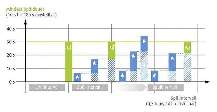 Wird Wasser regelmäßig und vollständig ausgespült, bleibt die Kaltwassertemperatur im zulässigen Bereich. Außerdem finden Legionellen nicht genügend Zeit für eine rasante Vermehrung und die Trinkwasserqualität wird bis zum Ort der Wasserentnahme sichergestellt.