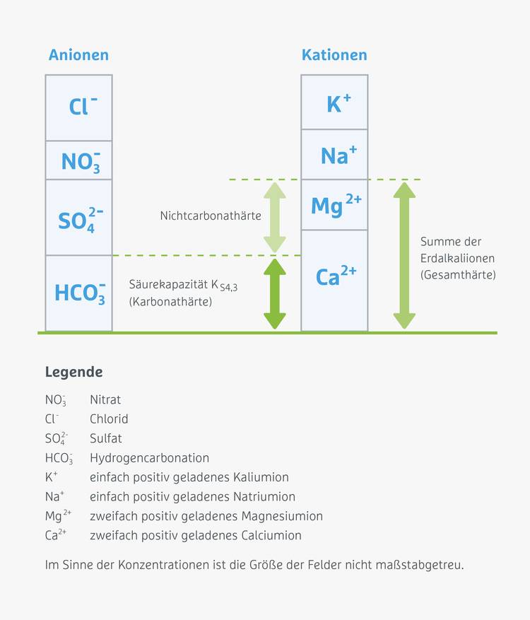 Wasser nimmt im natürlichen Kreislauf verschiedenste Inhaltsstoffe auf. Durch das Lösen von Calciumcarbonat (CaCO3, auch Kalk genannt) bzw. Dolomit (Mischcarbonat aus Calcium und Magnesium) kommt es zur Anreicherung von im Wasser gelösten Hydrogencarbonaten (HCO3 - ) (Abbildung 1).