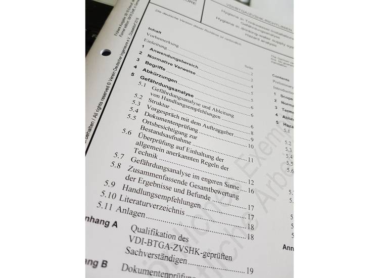 Bei der Erstellung von Gefährdungsanalysen ist also vorrangig zu prüfen, ob die Anforderungen der VDI/DVGW 6023 und des DVGW W 551 (A) eingehalten wurden, die Anforderungen der DIN EN 806 und der DIN 1988 sind hier nachrangig.