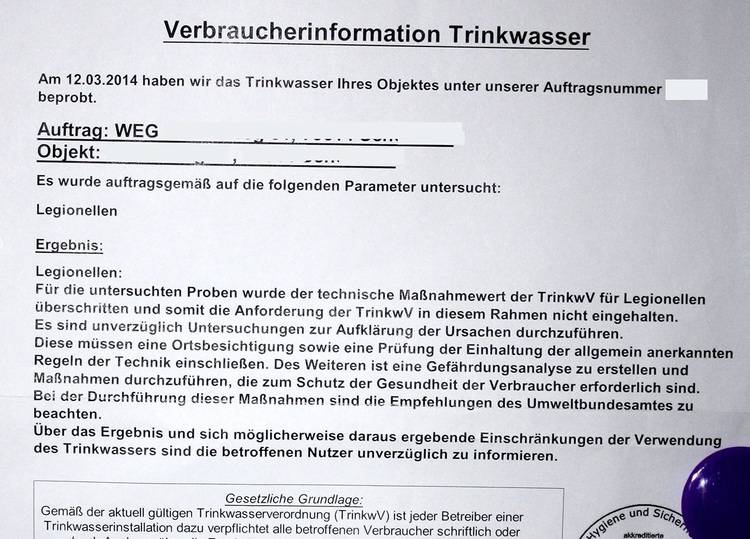Auch bei niedrigeren Konzentrationen von Legionellen kann nämlich eine mögliche Gefährdung nicht ausgeschlossen werden.