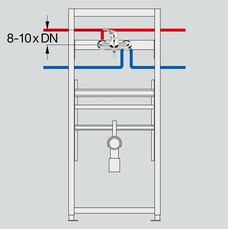 Messtechnische Untersuchungen belegen, dass bereits Auskühlstrecken mit einer Länge von 8–10 x DN eine kritische Wärmeübertragung über die Armatur auf das kalte Trinkwasser verhindern können und so das beschriebene Hygienerisiko reduziert bzw. bei bestimmungsgemäßem Anlagenbetrieb weitestgehend ausgeschlossen wird.