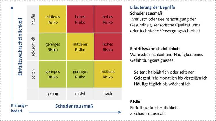 Grundsätzlich hat eine Gefährdungsanalyse in Anlehnung an das DVGW W 1001 „Sicherheit in der Trinkwasserversorgung – Risiko- und Krisenmanagement“ zu erfolgen.