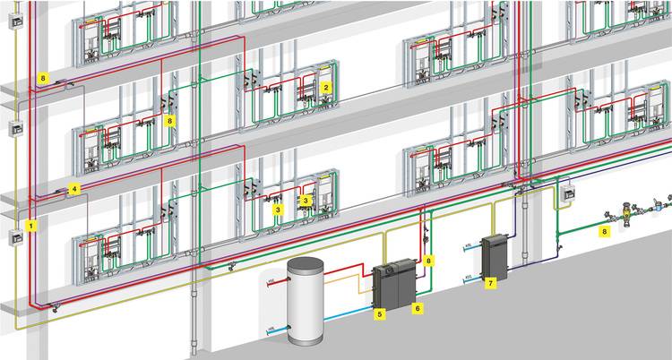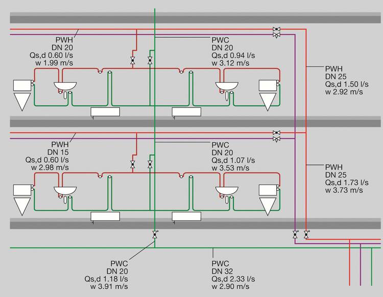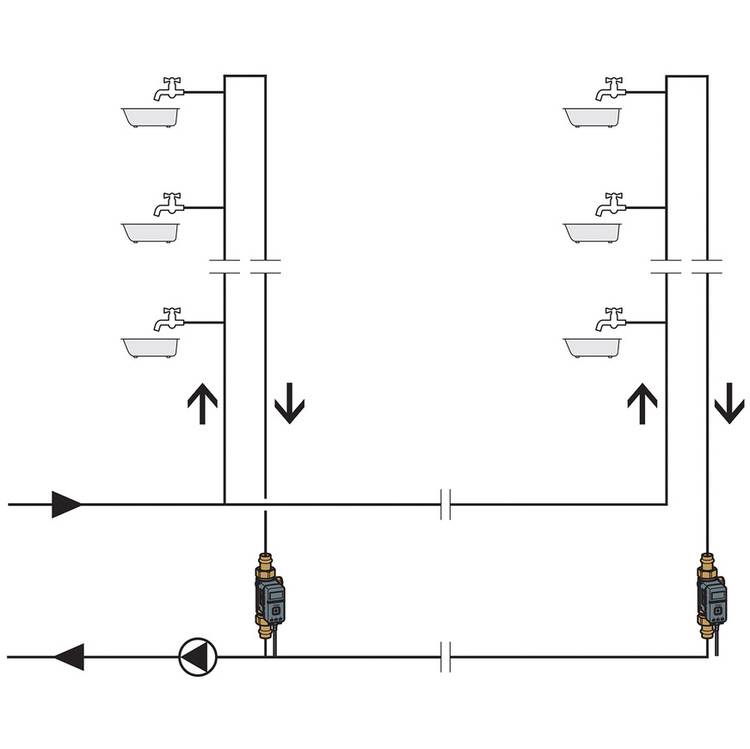 Deshalb sollte bei der Planung einer Trinkwasser-Installation im ersten Schritt die Zirkulation von Trinkwasser warm nur auf zentrale Bereiche des Objekts bezogen werden. Dazu gehören die Steigstränge für die vertikale Verteilung und eventuell Flure für die horizontale Verteilung.