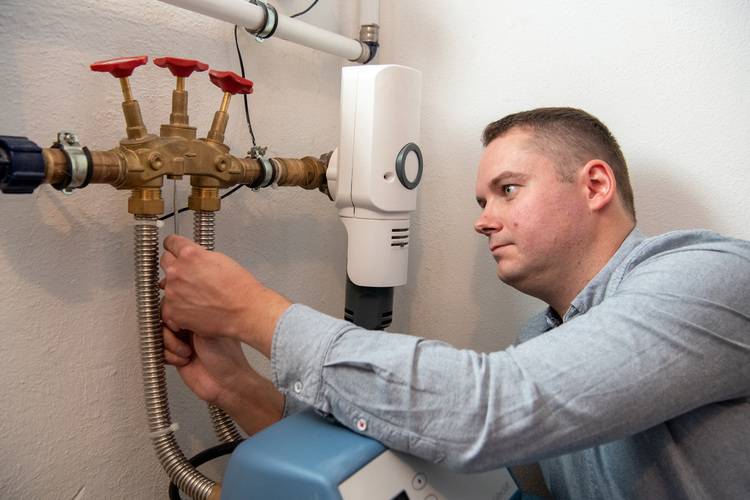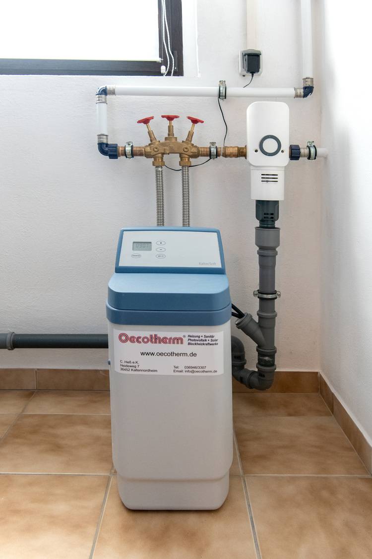 Dabei konnte dieser sich auch auf das Informationsmaterial stützen, das ihm Außendienstmitarbeiter Sebastian Bien zuvor zur Verfügung gestellt hat. Der Installateur überprüfte die Einbausituation bei Reinhard Otto. Wichtig ist, dass der Einbauort frostsicher sowie vor starker Hitze geschützt ist. Ebenso muss sich in unmittelbarer Nähe zum Wasserenthärter ein Kanalanschluss, ein separater Netzanschluss sowie ein Bodenablauf befinden.