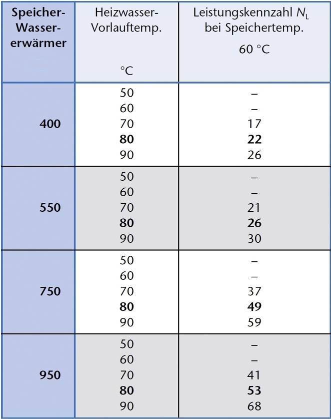 Man sucht einen Kompromiss zwischen Speichergröße und Kesselleistung. In der dargestellten Tabelle wird für die Bedarfskennzahl von genau 33,2 kein Speicher angeboten. Punktlandungen wären auch eher zufällig. Man greift in einem solchen Fall zu dem nächsten, höheren Wert. Aus der dargestellten Tabelle zeigt sich der LTN750 mit einer NL-Zahl von 37 als wirtschaftlicher Kandidat.