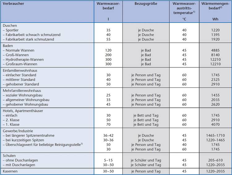 Nimmt man eine Normalausstattung an, so wird stumpf die Füllung einer Badewanne als Bedarf angenommen und der Wert von 5820 Wh wird pro Wannenfüllung eingesetzt. Das ist der einfachste Fall.