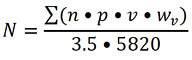 N steht also als dimensionslose Zahl, genauer Bedarfskennzahl. Um diese Bedarfskennzahl zu erkennen, schauen wir zuerst auf die beiden Werte unter dem Bruchstrich, also auf 3,5 multipliziert mit 5820.