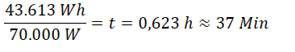 Und ohne einen Zuschlag auf diese 70 kW kann überprüft werden, wie lange dieser Wärmeerzeuger nun benötigen würde, den komplett entladenen Speicher durchzuwärmen.