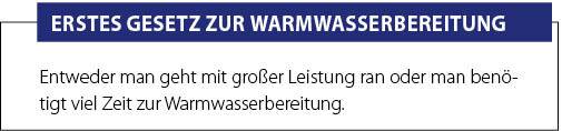 Dieses erste Gesetz zur Warmwasserbereitung hört sich einfach und logisch an. Davon ableiten kann man aber noch weitere schlaue Erkenntnisse für die Praxis: