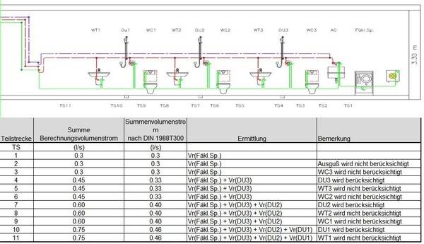 Die Rohrdurchmesser sind nach DIN 1988-300 zu berechnen. Die zu erwartenden Gleichzeitigkeiten der Trinkwasserentnahme werden in Abhängigkeit von den Angaben im Raumbuch, also von der definierten Art der zu erwartenden Nutzung, ermittelt. Dabei sollten Planer nach Möglichkeit aktuelle Erfahrungswerte aus vergleichbaren Objekten als belastbare Rechenbasis heranziehen.