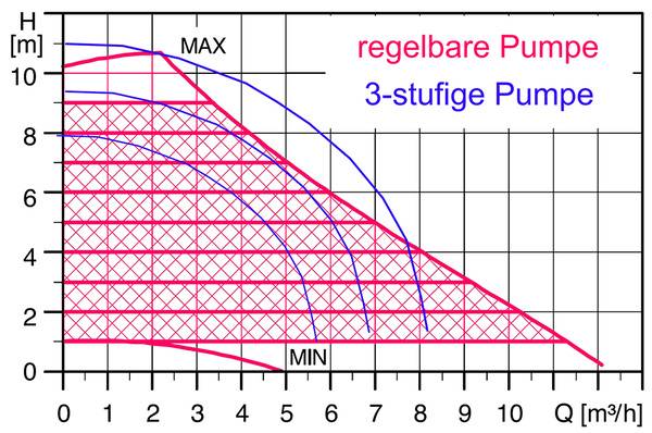 Eine elektronisch geregelte Pumpe folgt diesem Muster, nur eben stufenlos und durch eigene Einflussnahme der integrierten Regelelektronik.